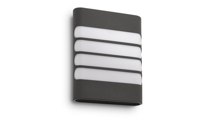 Die Philips myGarden Raccoon Wandleuchte in strukturiertem Anthrazit bietet eine leistungsstarke Beleuchtung Ihres Außenbereichs. LED-Licht, synthetische Materialien und ein minimalistisches Design sorgen für eine moderne Atmosphäre.