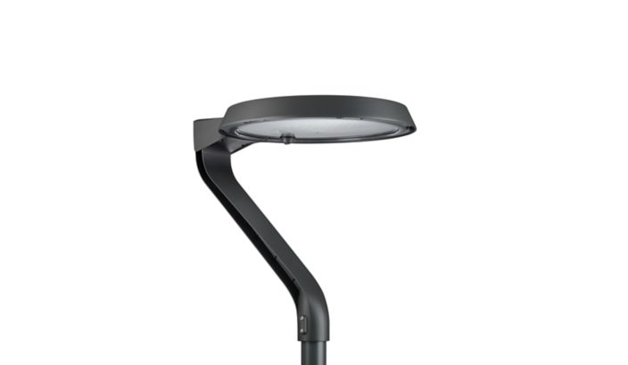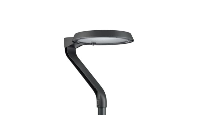 Urban road & street light, Aluminiumdruckguss, Grau, Mastspitze für Durchmesser 62 mm, Netzteil mit DALI- und SystemReady-Schnittstelle, Konstanter Lichtstrom, 936 lm, 8.5 W, 110 lm/W, 4000 K, (0.381, 0.379) SDCM <5, CRI70, Lichtverteilung engstrahlend 10, IP66 | Schutz gegen Eindringen von Staub, strahlwassergeschützt, IK09 | 10 J, Schutzklasse I, Standardmäßige Überspannungsschutzstufe, Interner Anschluss