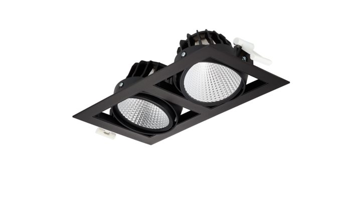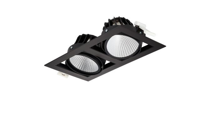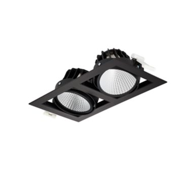 2 spots (*flux and performance values for 1 spot), C/O 154x304 mm, Aluminium, Schwarz, Einfache Pulverbeschichtung, Externer, kabelloser Interact System Ready Treiber, 8200 lm, 60 W, 135 lm/W, 3000 K, (0.434, 0.403) SDCM <2, Tiefbreitstrahlend (MB), PerfectAccent-Reflektoren, IP20 | Fernhalten von Fingern, IK02 | 0,2 J Standard, Schutzklasse II, 2 Steckverbinder, 2-polig, TP(a) diffuser flammability class