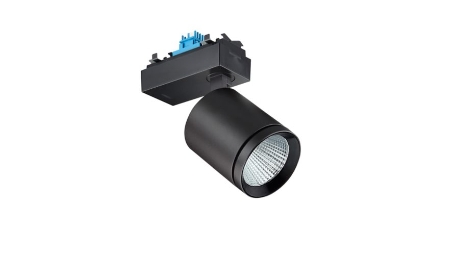Performance, Maxos fusion variant (exposed driver box), Aluminium, Schwarz, Signalschwarz (RAL9004), DALI-Dimmen Interact System Ready, bereit für visuelle Lichtkommunikation, Visible Light Communication, 6000 lm, 45 W, 135 lm/W, 2700 K, (0.458,0.410)<3, Stark reflektierender Metallreflektor, breitstrahlend, 40 bis 80 Grad, IP20 | Fernhalten von Fingern, IK02 | 0,2 J Standard, Schutzklasse II, 3-phasige Stromschiene